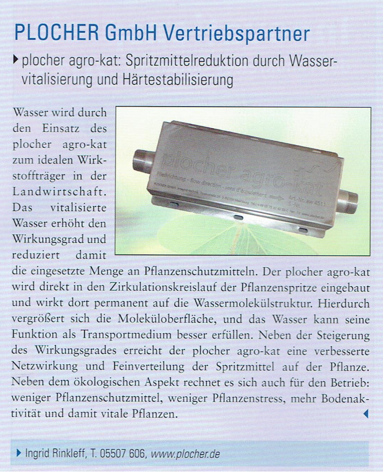 1996 durfte ich, motiviert durch eine ZDF-Wiederholung des Filmbeitrags „Wenn der Wassermann kommt“ und einen PLOCHER-Vortrag in Duderstadt, die positiven Wirkungen einzelner PLOCHER-Produkte erfahren. Die große Begeisterung über die Ergebnisse verschiedener Eigenexperimente hat dazu geführt, dass ich zunächst alle Freunde und Bekannte über die vielen Möglichkeiten der PLOCHER-Technologie informiert habe. Daraus ist dann schnell die Entscheidung gefallen als Vertriebspartner PLOCHER-Produkte in unserer Region zu vertreiben.